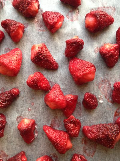 ジュースの後の副産物「いちごのセミコンフィ」硬すぎず丁度よい柔らかさに出来ました。これはケーキに入れる予定です。もちろんそのまま食べても美味しいです♪